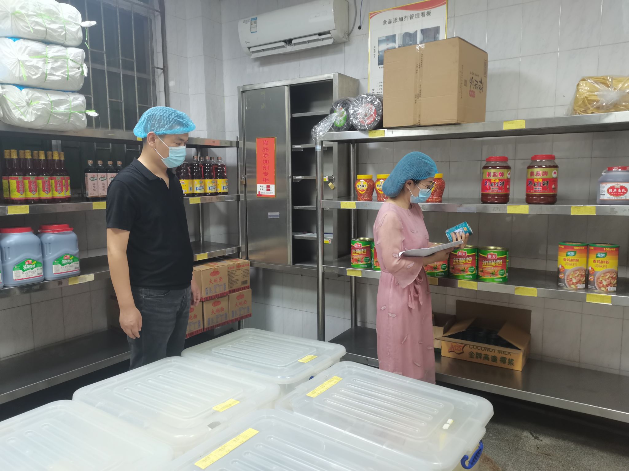 汇报会后,检查组分组开展实地检查,一方面组织膳食工作主要负责人、师生进行座谈,发放调查问卷,另一方面调阅“校园餐”有关财务、招投标、食品安全相关文件,同时对我校食堂的食品安全管理情况进行了现场检查。