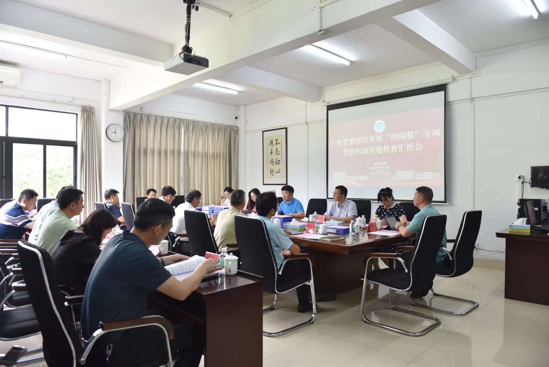 6月21日上午,广东省教育厅总督学徐仕敏带领“校园餐”专项整治第三检查组一行6人,到我校开展校园食品安全和膳食经费管理突出问题专项整治行动实地检查。校长吴业春、副校长唐冬冬,纪检监察室、总务后勤部、财务部、审计部、学生工作部等相关职能部门负责人陪同检查。