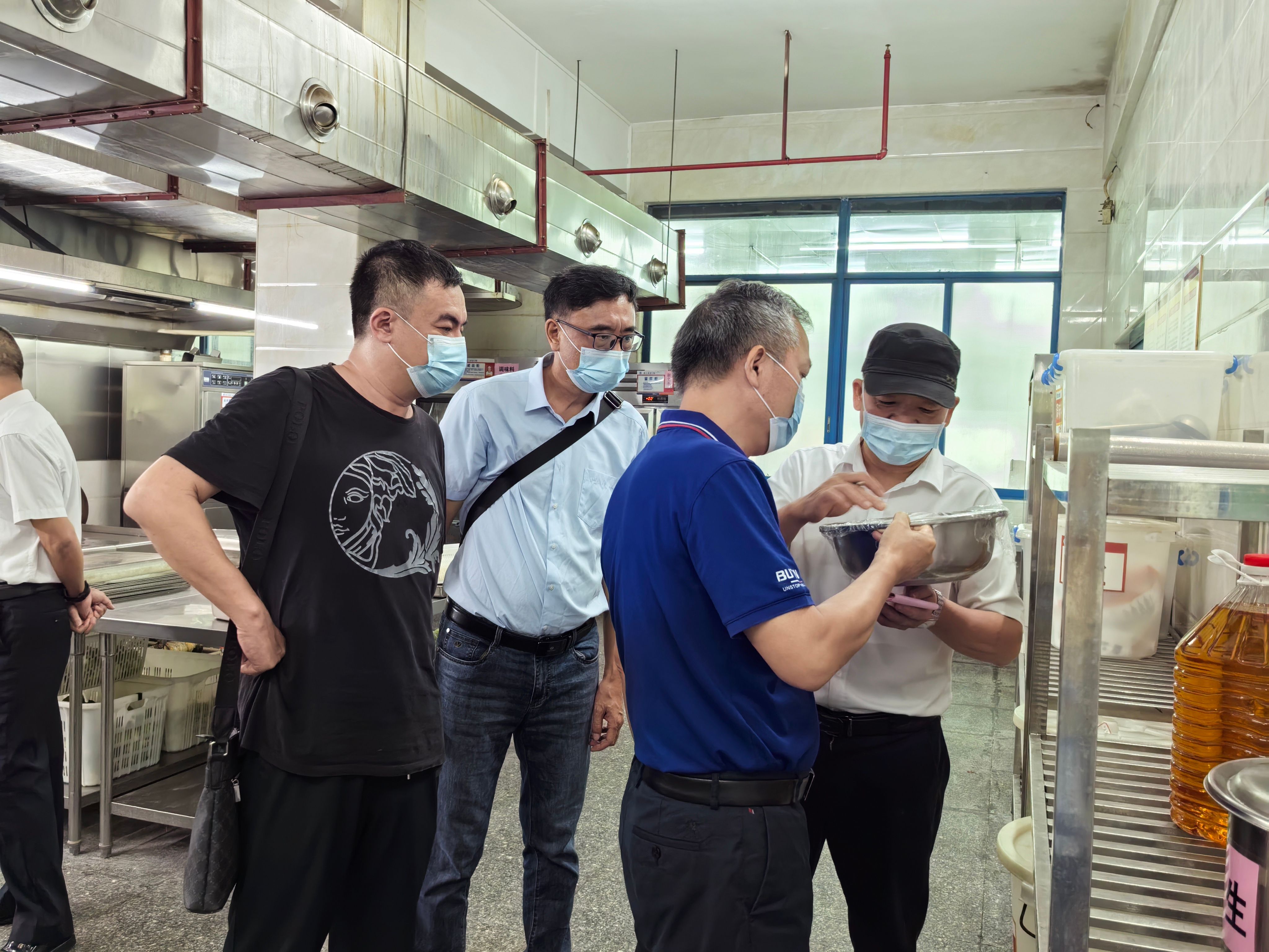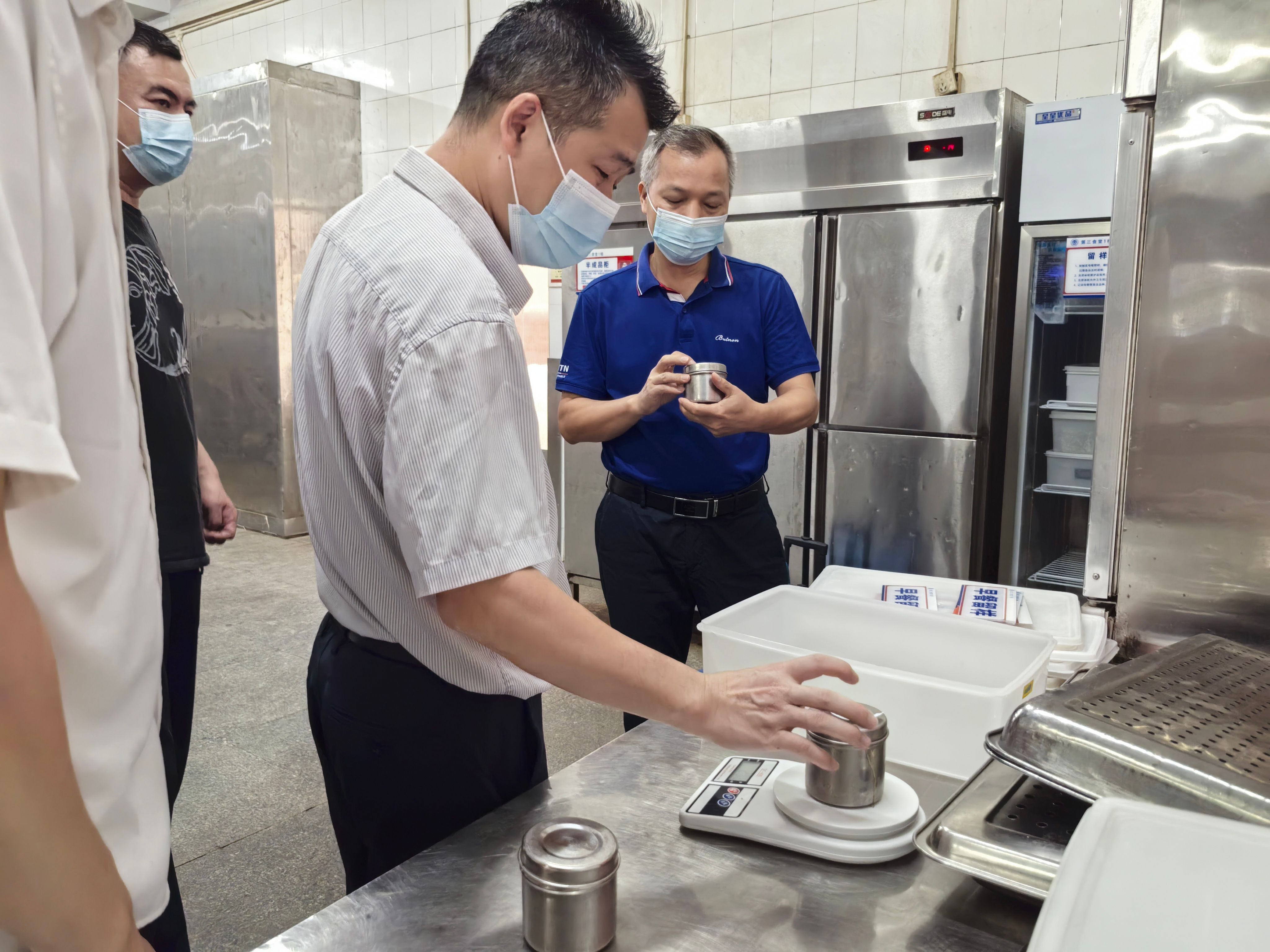 为了深入贯彻落实《广东省教育厅关于切实做好全省校园食品安全和膳食经费管理突出问题专项整治行动问题整改工作的通知》文件精神,及时做好省教育厅检查组和市教育局督导组联合开展实地检查发现相关问题的整改工作,10月10日,总务后勤部部长欧就生带队深入食堂开展专项检查,党总支副书记谢海柱、监督科、膳食服务中心、各食堂相关负责人参与。