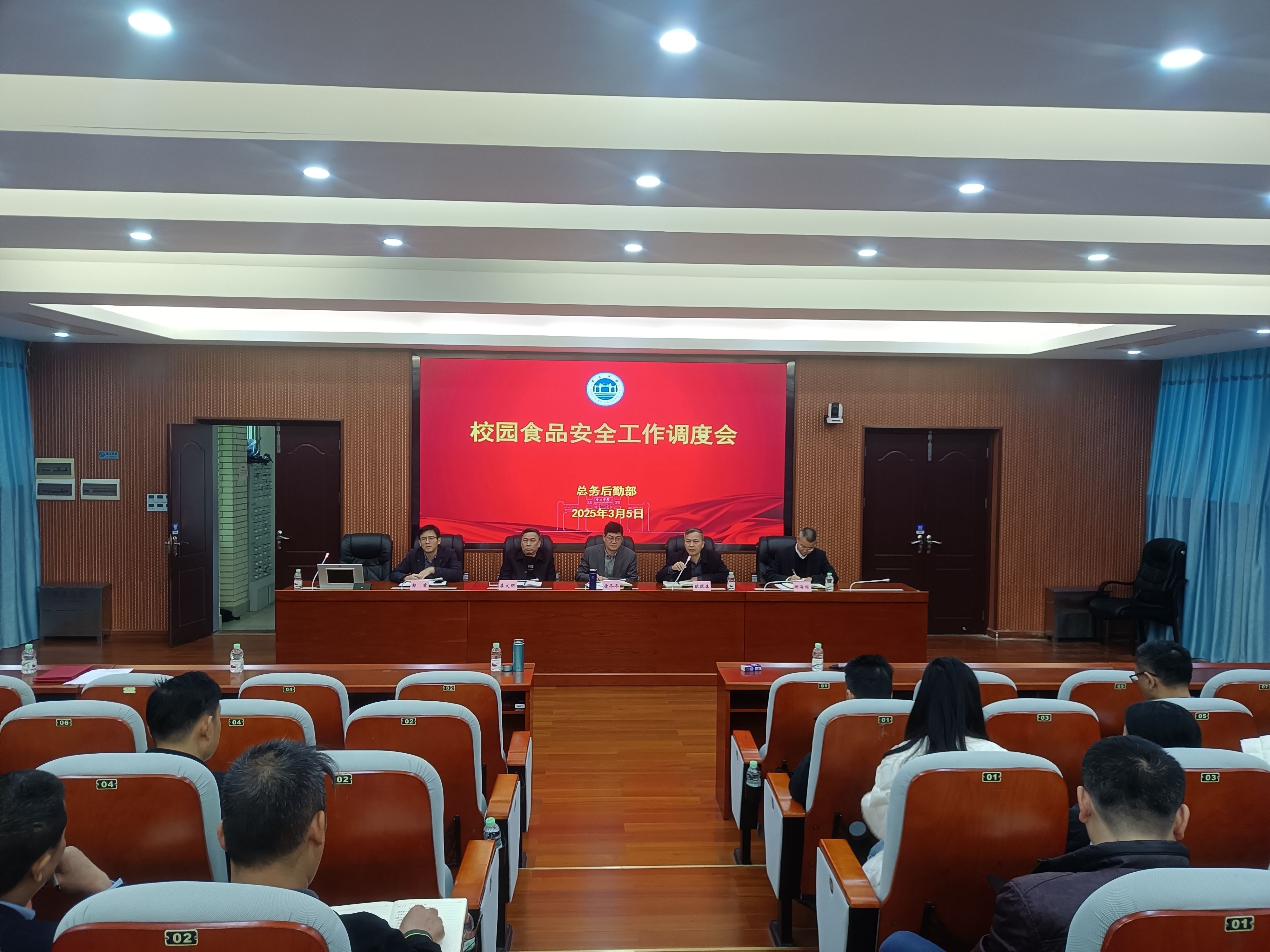 3月5日,总务后勤部在第二会议室召开校园食品安全工作调度会,唐冬冬副校长、总务后勤部全体领导、食品安全监督科、膳食中心、各食堂主管(经理)等近30人参加会议。会议由总务后勤部部长欧就生主持。