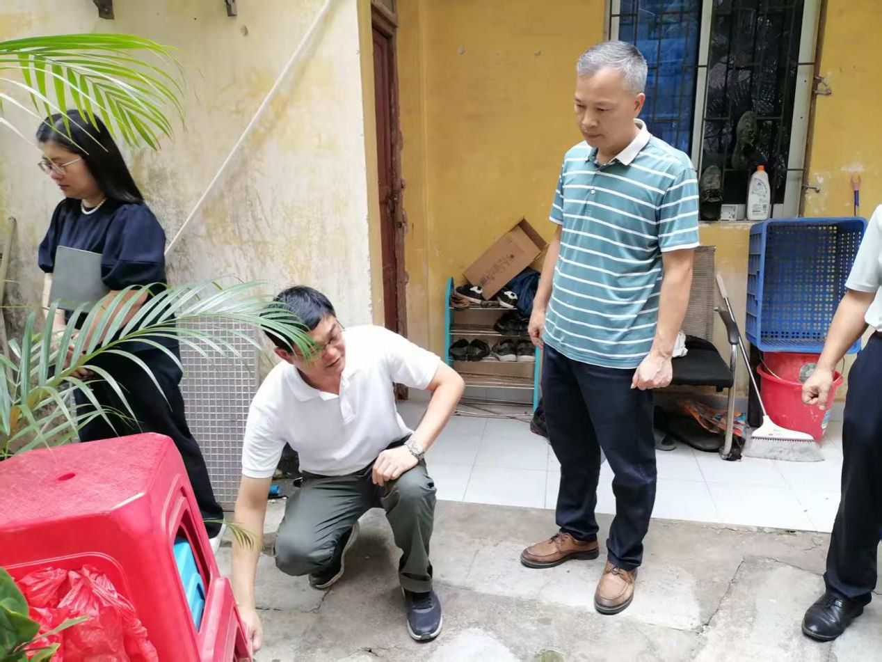 8月14日中午,副校长唐冬冬率领党政办公室、总务后勤部等部门相关负责人到校园多个地点进行现场检查、指导基孔肯雅热疫情防控工作。