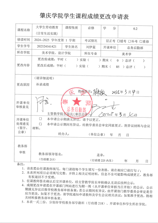 学生课程成绩更改申请